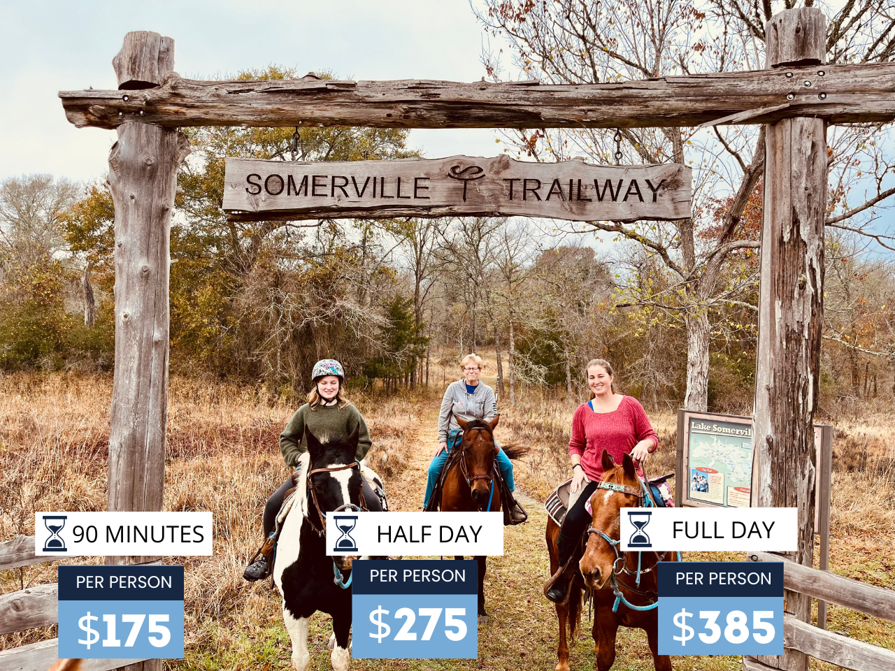 2 Hour Ride, 1/2 Day Ride, or Full Day Ride.